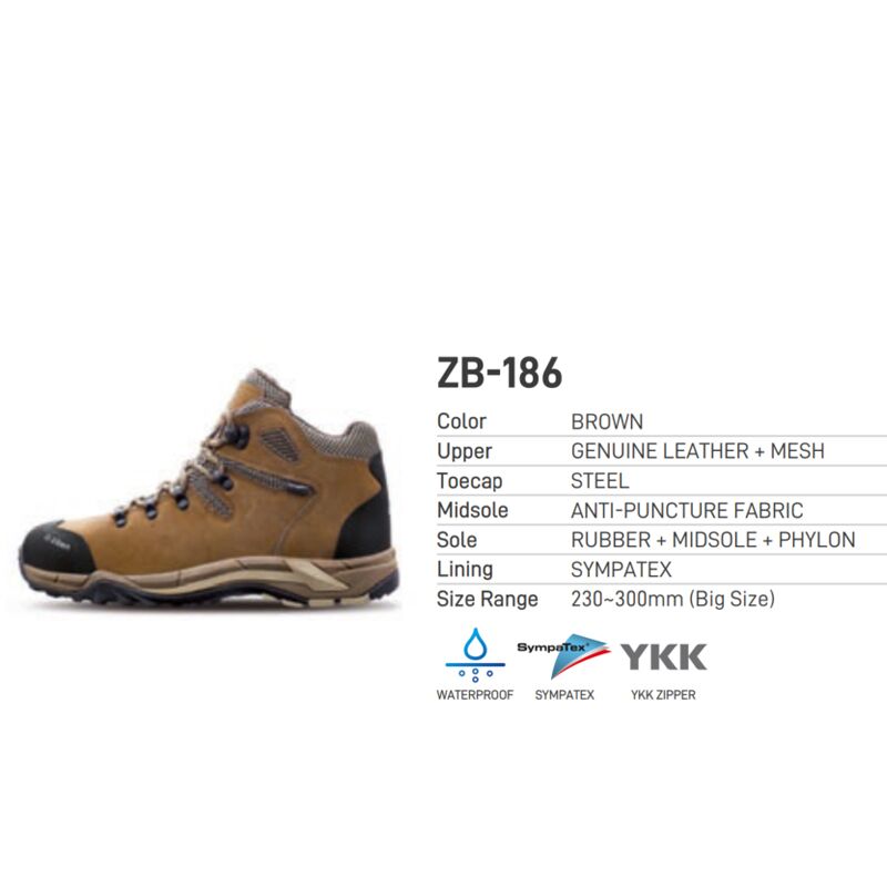GIÀY BẢO HỘ ZIBEN 186 là một trong các mã sản phẩm cao cấp của hãng giày Ziben, được sử dụng khá phổ biến, ngoài những chất liệu và tính năng thông thường của một đôi giày hãng Ziben như đế cao su kết hợp với các chất liệu sympatex, phần trên giày là kết hợp giữa da thật và lưới, kiểu dáng thời trang.
