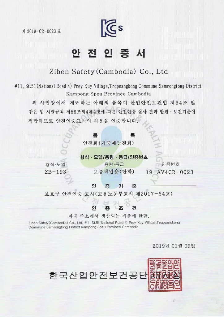CHỨNG NHẬN CỦA GIÀY BẢO HỘ ZIBEN 193N