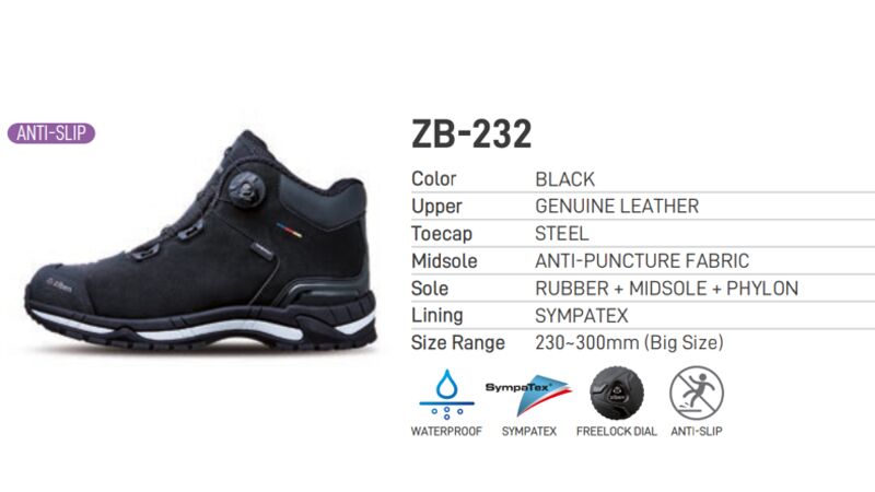 Ziben được biết đến là 1 thương hiệu Bảo hộ lao động số 1 đến từ Hàn Quốc.Và GIÀY BẢO HỘ ZIBEN 232 là một trong các mã sản phẩm cao cấp của hãng.