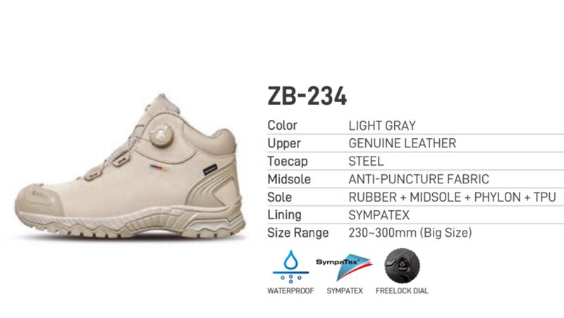 THÔNG TIN CƠ BẢN CỦA GIÀY BẢO HỘ ZIBEN 234