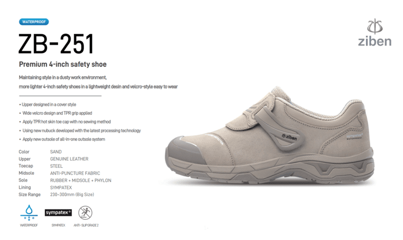 Ziben được biết đến là 1 thương hiệu Bảo hộ lao động số 1 đến từ Hàn Quốc. Và giày bảo hộ Ziben 251 là một trong các mã sản phẩm cao cấp của hãng.