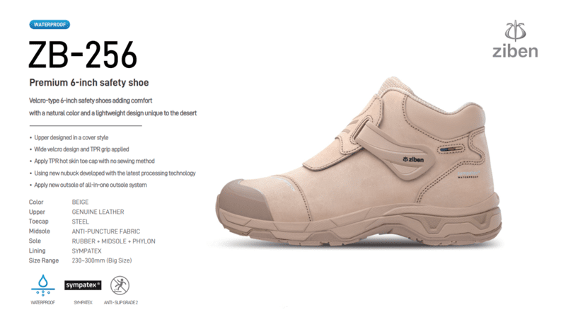 Ziben được biết đến là 1 thương hiệu Bảo hộ lao động số 1 đến từ Hàn Quốc. Và giày bảo hộ Ziben 256 là một trong các mã sản phẩm cao cấp của hãng.