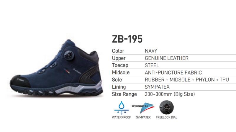 Ziben được biết đến là 1 thương hiệu Bảo hộ lao động số 1 đến từ Hàn Quốc.Và GIÀY BẢO HỘ ZIBEN 195 là một trong các mã sản phẩm cao cấp của hãng.